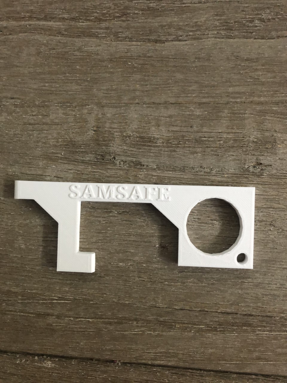 I have created a portable "safe key" - it is a tool that allows you to use public touchscreens, open doors and push buttons without using your hands! It can attach to a key chain or you can use the clip included with your purchase. The safe key should be wiped down with sanitizer after use.